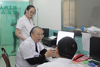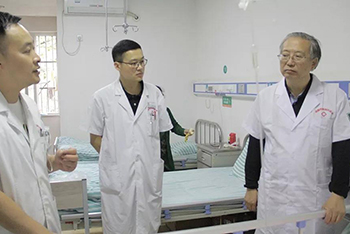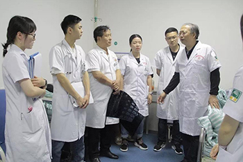 在教学查房过程中,黄教授在主管医生汇报病例后,对患者进行查体和问诊,就疾病的诊疗要点进行了梳理分析,并分享了省级医院的经验。