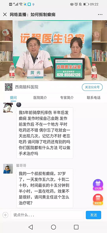 8月11日下午2点,都医科大学附属复兴医院主任医师、成都西南脑科医院特需黄光做客我院《远程医生诊室》,在线为典型患者进行远程会诊以及病例解读。