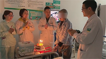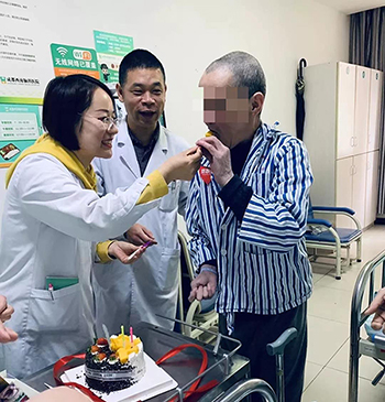 住院期间,科室医护人员根据葛大爷的病情制定了详细的治疗方案和护理措施,葛大爷的病情得以稳定并好转。在得知他即将迎来61岁生日时,大家自发组织为他庆生。订蛋糕、点蜡烛、唱生日歌……尽较大努力让他感受到家一般的温暖。