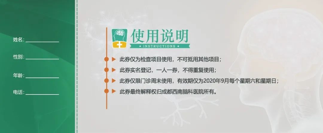 内容三:到院即可领取脑病专项检查200元抵用券,仅限周末使用。