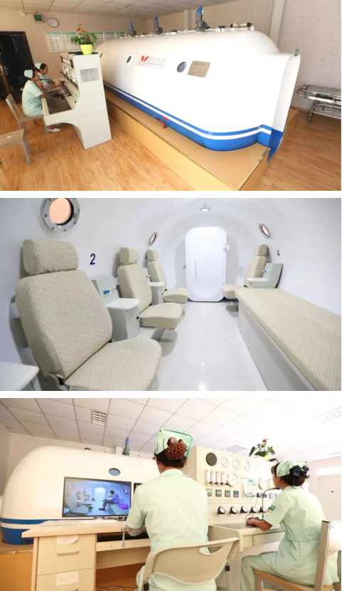 我院引进的高压氧舱为新型双舱四开门空气加压舱,设有通风及多媒体影像监视系统,设备先进、安全舒适。在其内接受氧疗,不仅解除疾病缠身的痛苦,而且能得到全身心的放松、愉悦。