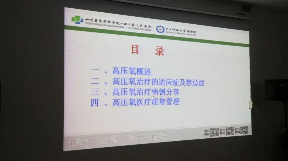 为增强我院医师对于高压氧临床运用基本知识的了解,加强科室之间互相交流学习,促进高压氧医学的临床发展,我院于11月13日上午在3楼会议室举办了“高压氧治疗的临床应用”知识讲座,由成都市高压氧质控中心主讲,我院病区、门诊、康复科医护人员近60人前来聆听此次交流讲座。