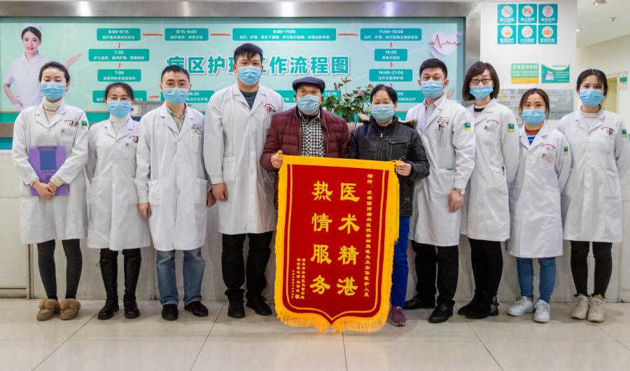 黄大爷渐进性肢体抖动僵硬,运动迟缓12年多,以“帕金森病”收入我院。药物治疗缓解时间不长,逐渐加量至今。近一年来患者无法下地行走,轮椅入院。经过我院专业调药后,黄大爷的药物效果改善,可以脱离轮椅自己走了,特意送来锦旗表示感谢。