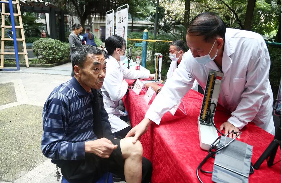 上午九点,就已经有许多老人排起了队。七十多岁的李大爷平时都是一个人独居,几年前突发脑梗,人是救回来了,却落下了一侧肢体僵硬肿胀的毛病,血压也一直都不太稳定。他听说了这个义诊活动后,特意起了个大早。