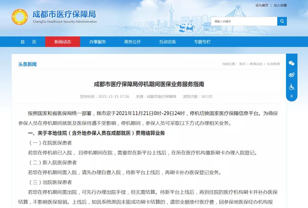 第二次停机将于2021年11月21日0时,至2021年11月30日0时正式切换上线统一医保信息平台,这期间多方面暂停办理医保线上线下业务。