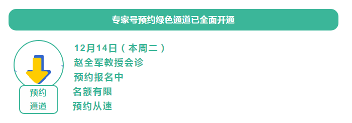 赵全军教授的会诊时间仅12月14日一天,请大家合理的安排预约时间。
