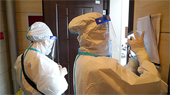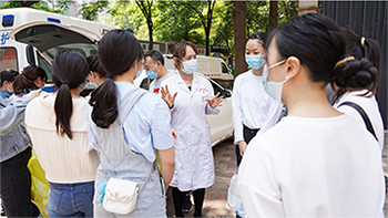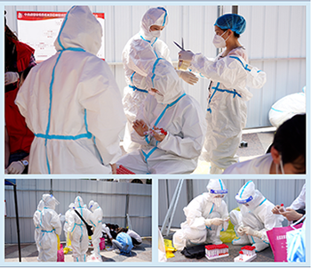 在取样现场,医护人员严格执行采样流程,为受检者进行核酸咽拭子采样,她们的工作步骤行云流水、一气呵成。