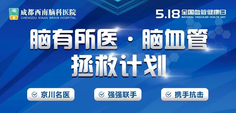 我国将每年的5月18日定为“血管健康日”,旨在呼吁大家重视血管健康,守护人类生命之河。作为西南地区脑病专科医院,我院正式启动“脑有所医·脑血管拯救计划”大型公益特别活动,号召社会关爱血管健康,同时对脑血管病患者提供正确的就诊治疗,让他们重拾治疗的信心,远离疾病的痛苦,重新开始新的美好人生!