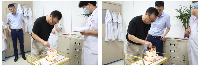 吴主任紧随其后,将手中的贺卡递给了另一位寿星。这一刻,科室的每一个角落都洋溢着家的温暖,每一份祝福都化作了前行的动力。