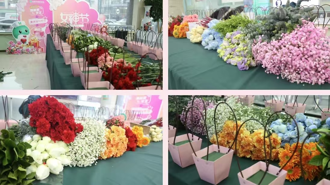 亲自为全体女性职工献上鲜花,