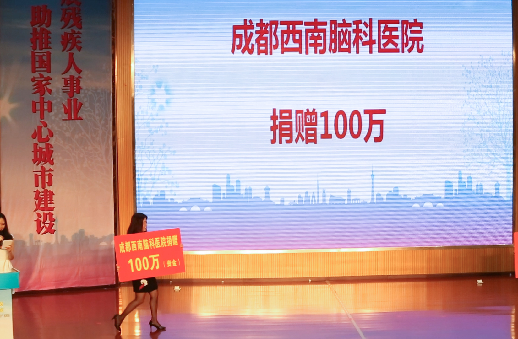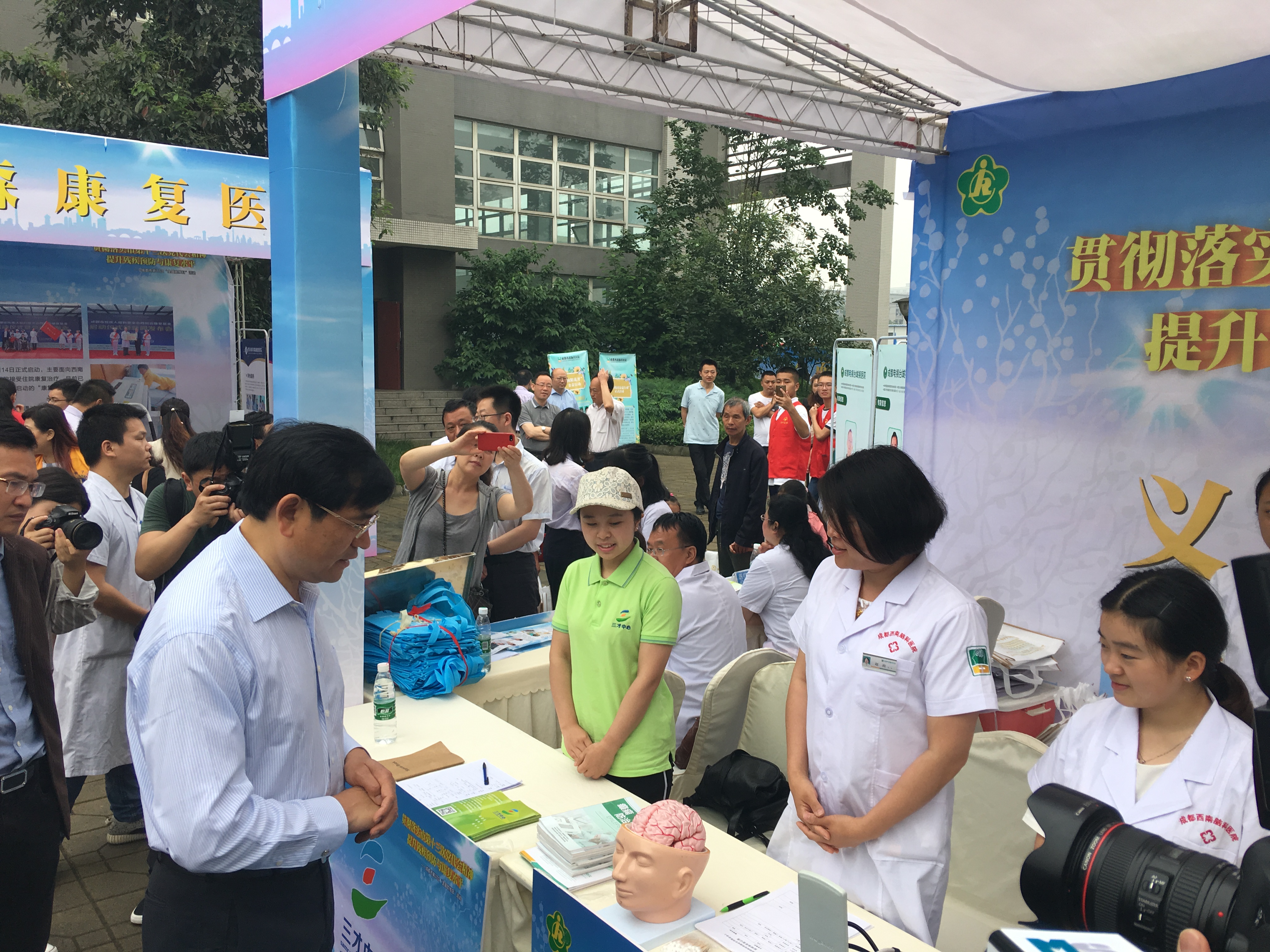 成都西南脑科医院作为这次活动的协办单位,不仅捐出了100万元的善款用于帮助残疾人的救助工作上,还安排了医院的工作人员到达现场进行义诊活动。