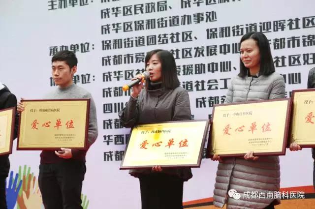 为了让更多的贫困居民感受到社会的温暖,为了给予更多有需要的人以爱心和帮助,昨天下午由成都市民政局、成都市精神文明办、成华区民政局、成华区精神文明办、成华区保和街道办事处主办的“社会助困惠民生 志愿服务在基层”暨保障性住房特殊困难家庭社会救助项目启动仪式在成都市成华区团结社区完满落幕。成都西南脑科医院作为支持单位也受邀参与了这次活动,在捐献爱心的同时还在现场开展了医疗志愿援助活动。
