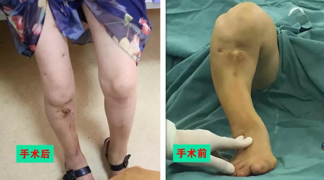 刘可新主任告诉记者,廖女士手术过程相当配合,手术前后对比,堪称真实版脱胎换骨案例:廖女士的患病处在长骨头的骨垢处,骨垢被破坏后,骨骼生长不平衡,导致腿部畸形;骨骼之间有缝隙,形成骨不连,活动时成假关节,来回运动不正常。手术的目的是:使骨不连处骨愈合、腿部畸形矫正(弯曲骨头恢复正常形状)、短缩的腿增长。手术的难度在于:同时解决骨不连、扭曲畸形、短肢这些问题,是难度较高的重建功能手术。