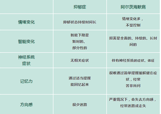 那么,如何来鉴别老人是抑郁症还是阿尔茨海默病呢?我们给大家总结了一个对比表:
