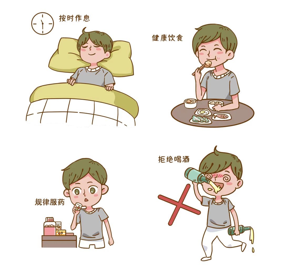 癫痫患者日常应作息规律,避免熬夜及过度劳累,保持心情平稳;避免饮酒、咖啡、浓茶和过于辛辣刺激的食物,饮食均衡;按时规律服药,不随意减停药物或漏服药物,也不要盲目相信偏方秘方,定期去医院复查。