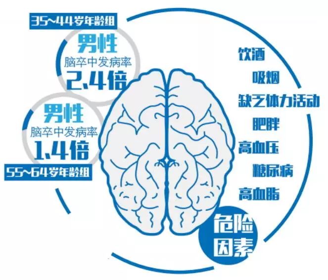 《2017年中国卒中防治报告》显示,我国40岁以上人群现患和曾患脑卒中人数为1242万,患者年轻化趋势明显。一些特定疾病,如高血压出血 、脑动静脉畸形、烟雾病、 脑动脉瘤、静脉系统疾病等有可能导致突发脑卒中;此外,肥胖、熬夜、酗酒、抽烟、不规范的剧烈运动等也是导致年轻人患脑卒中的重要原因。