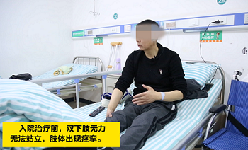 张先生在入院治疗前,双下肢无力、不能行走、不能站立,肢体出现痉挛现象。整个感觉系统、运动系统和自主神经系统都有问题。