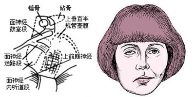 1)面瘫、面神经麻痹、面神经炎、面肌萎缩、贝尔麻痹、歪嘴巴、吊线风等;