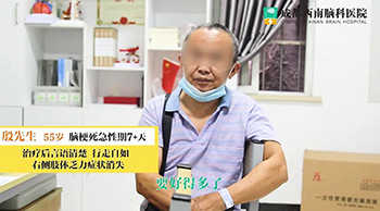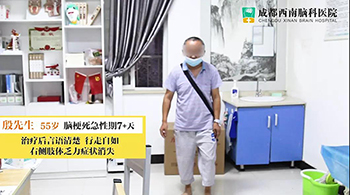 经过我院一周的对症治疗,前三天急性期的溶栓治疗,后四天恢复期的DFPP自体免疫诱导,以及康复训练,殷先生右侧肢体乏力症状明显改善,右下肢拖曳步态消失,可以自行行走,活动自如,吐词也清晰了,患者及其家属对治治疗果非常满意。