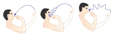 将前臂外旋、伸直,指触自己的鼻尖,先慢后快,先睁眼后闭眼,重复进行。
