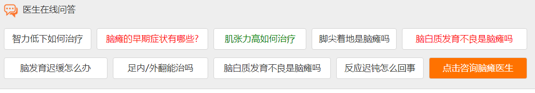 脑瘫患儿属于一种随着身体发育症状逐渐变化的疾病,如果可以在初就选择系统化、综合化的治疗可能会大大提高康复以及治治疗果,对于促进患者恢复,缩短治疗周期有一定的帮助。但是现实往往和理想是有差距的,很多家长急于求成,盲目就医,有什么新办法都想尝试往往把有效但是需要坚持的治疗忽略,各种治疗方式反复尝试症状反复加重。》》》家长咨询:患儿好的治疗时机是什么时候?《《《