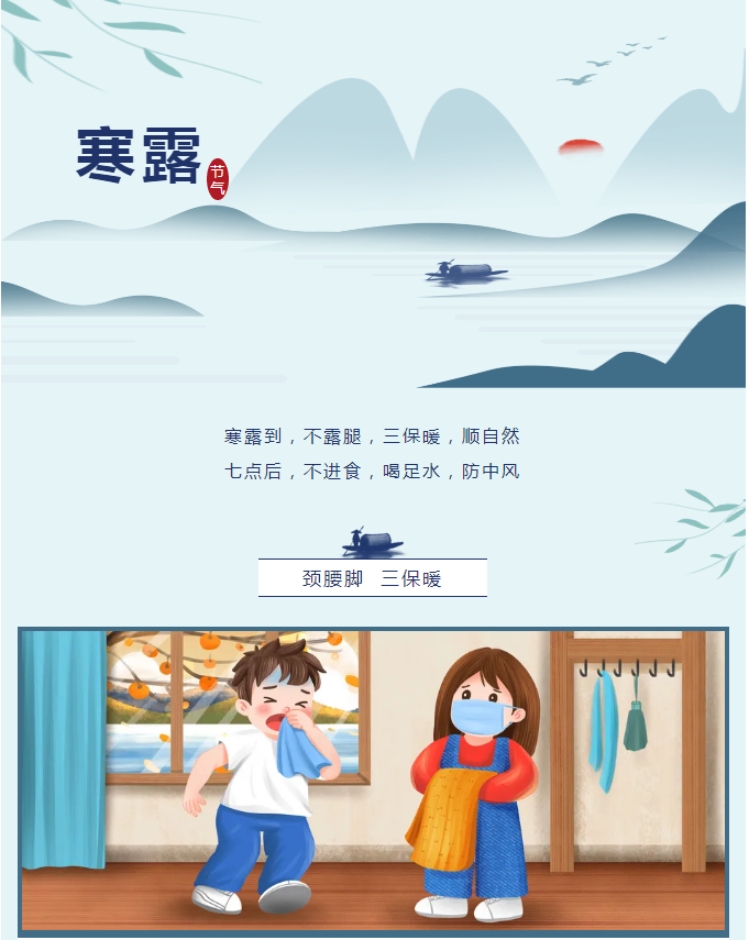 过完十一长假,我们迎来了寒露节气,这是二十四节气中第一个带“寒”字的节气,寓意着气候从凉爽到寒冷的过渡。寒露之后不宜再“秋冻”,尤其要注意肩颈、腰背、脚部的保暖。