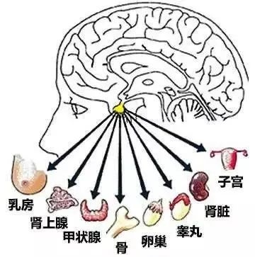 在全身所有器官中,垂体位高权重,“一人之下,万人之上”。它接受下丘脑的领导;它的“下属”众多,包括甲状腺、肾上腺、卵巢、睾丸、骨骼与软组织等。它每天负责把不同的激素作为指令,通过血液这个传送系统发给“下属”。“下属们”接收到指令后便开始工作,才得以维持身体正常运转。