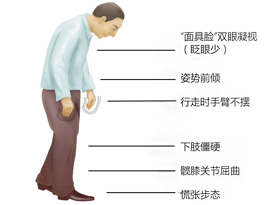 除了有帕金森病相同的表现,如运动迟缓、表情呆滞、肌肉僵硬、静止性震颤以外,还有体位性低血压、痴呆、共济失调等。