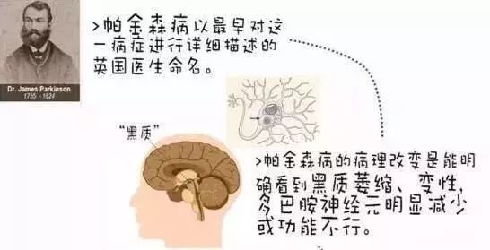 帕金森的病因尚不明确,但发病机制是中脑黑质(大脑深部的一个结构)中的细胞发生变性、死亡后,不能合成足够多巴胺。当它的合成量不足时,人体就会表现出肌肉僵硬,运动迟缓,静止时的震颤,情绪上的低落等等。多巴胺是一种神经细胞间传递信息的物质,医学上称为神经递质,它可以调节人的活动和情绪,让手能做精细的动作,让情绪更愉悦。除此之外,年龄老化、遗传因素、环境因素、用脑过度、熬夜、压力过大等不良的个人生活习惯,也与帕金森病密切相关。